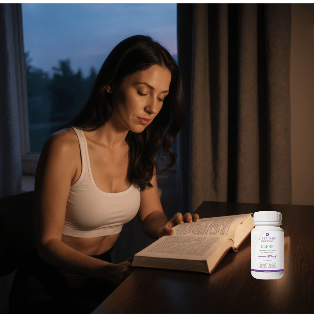 Optionally take Lifeguard Sleep in the evening to support wind-down, smoother sleep onset, and mornings. Pair with low-light and no screens; consistent timing trains your body clock and builds habit.